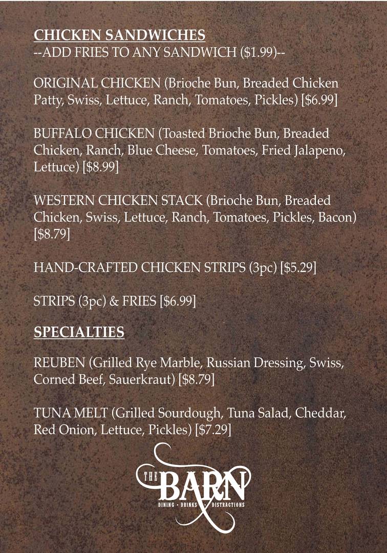 Chicken Sandwiches & Specialties Menu