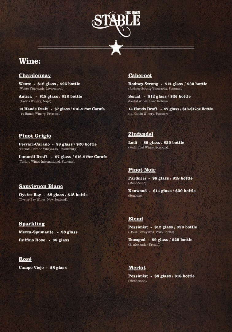 Patio Bar Wine Menu
