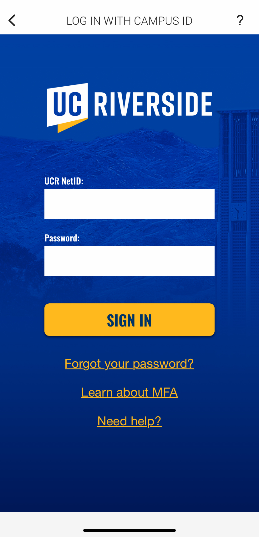 UCR Net ID Login screen